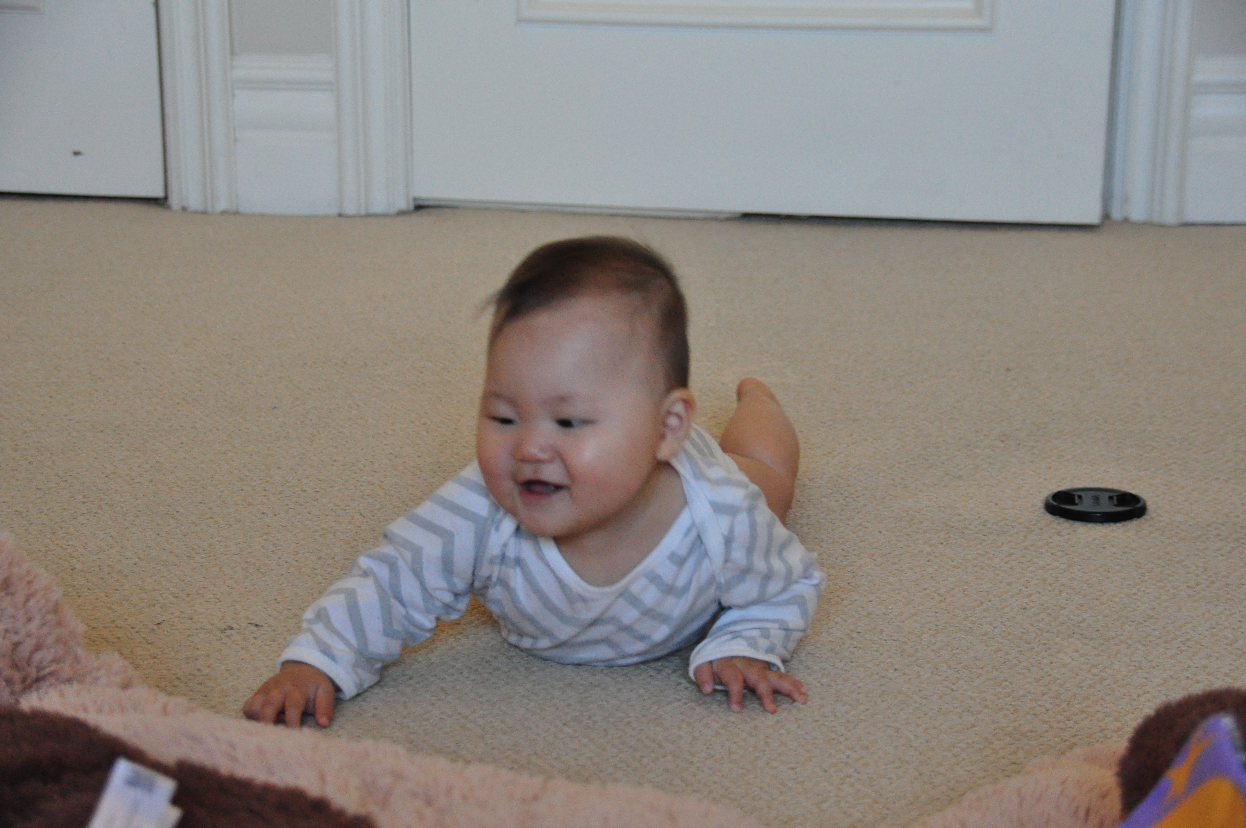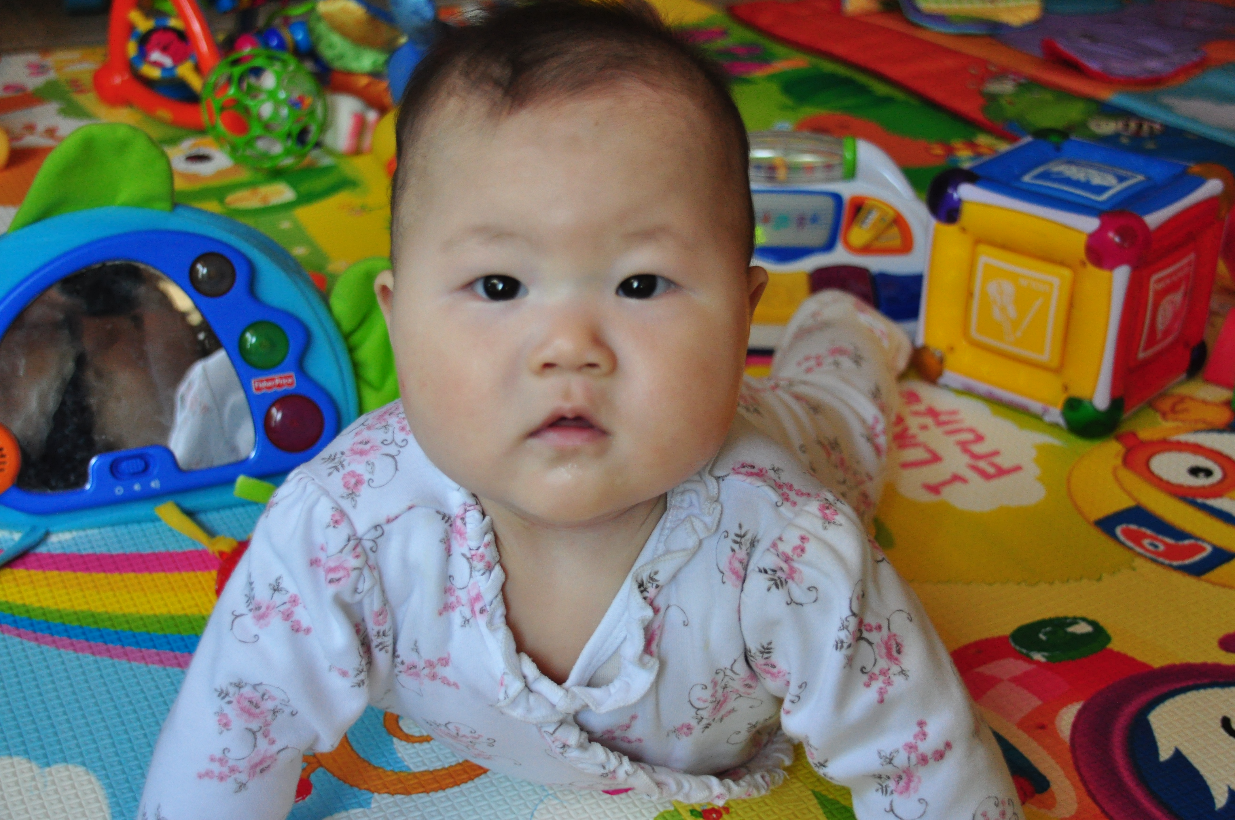 – Napping: Nothing’s perfect and Averie’s napping (or lack thereof) definitely attests to that.  She’s never really been as consistent a napper as her brother, and this past month has been pretty bad.  She can go anywhere from 20 minutes-2 hours, but it’s usually about 30-40 minutes and then she’s up.  And she fights naps more and more throughout the day, getting crankier and crankier until she finally passes out at night.  It’s so strange to me how babies can sleep so well at night but poorly in the day.  Short naps seem to be a pretty common occurrence in babies this age, and even has a nickname – the nap intruder.  In a nutshell, she’s having a difficult time transitioning from one sleep cycle to the next, which is why she keeps waking up even though she isn’t completely rested.  Despite trying various tactics, none seems to really jive with her, and I think we’re just going to have to wait until she outgrows this.  I know I shouldn’t complain since she does sleep well at night.